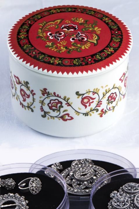 Smykkeskrin Øst-TelemarkInkluderer indre skrin .Ytre mål: d 14 cm –. h 11 cm .Lite smykkeskrin er bestillingsvare - kontakt butikken for mer informasjon.