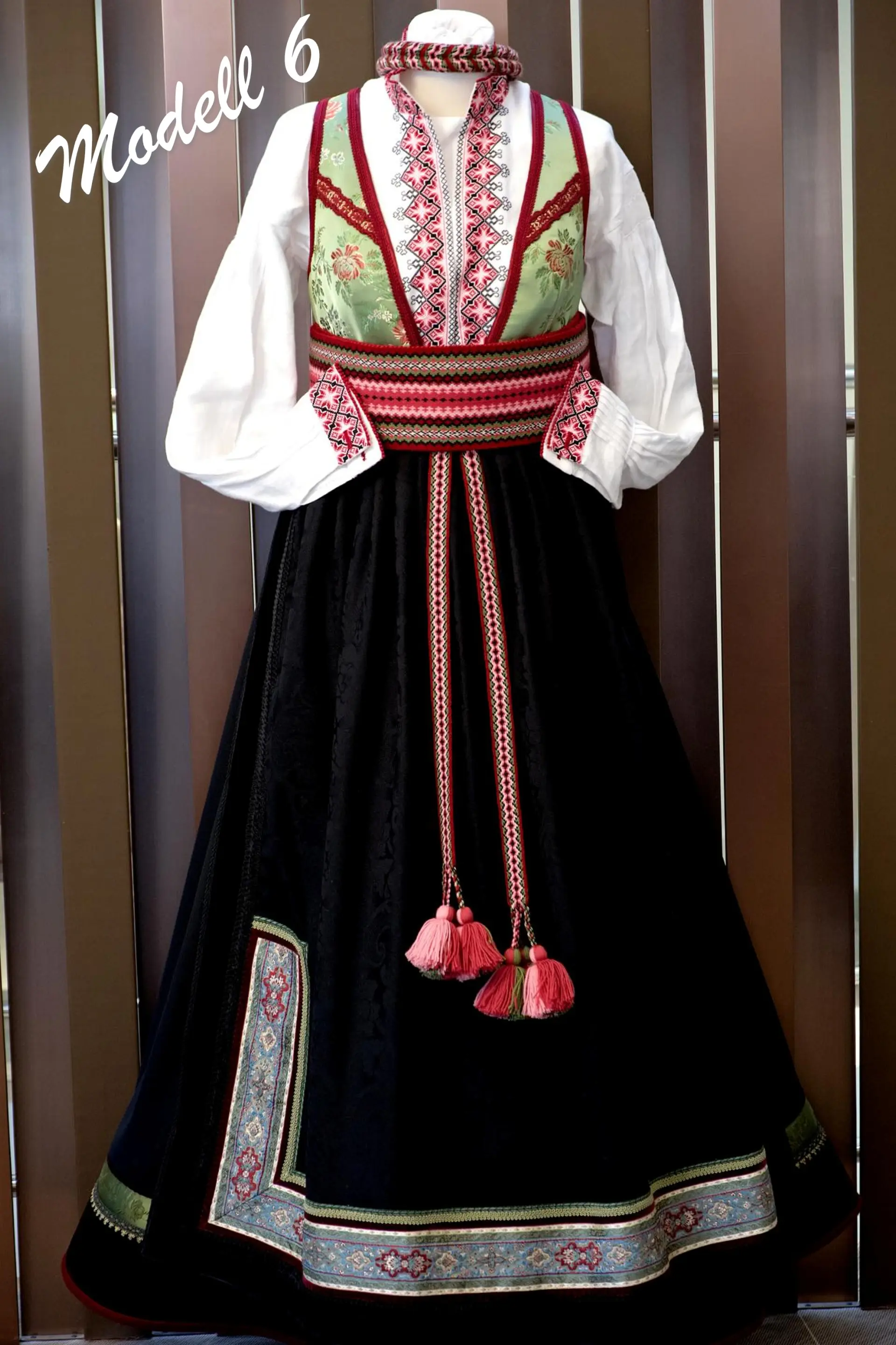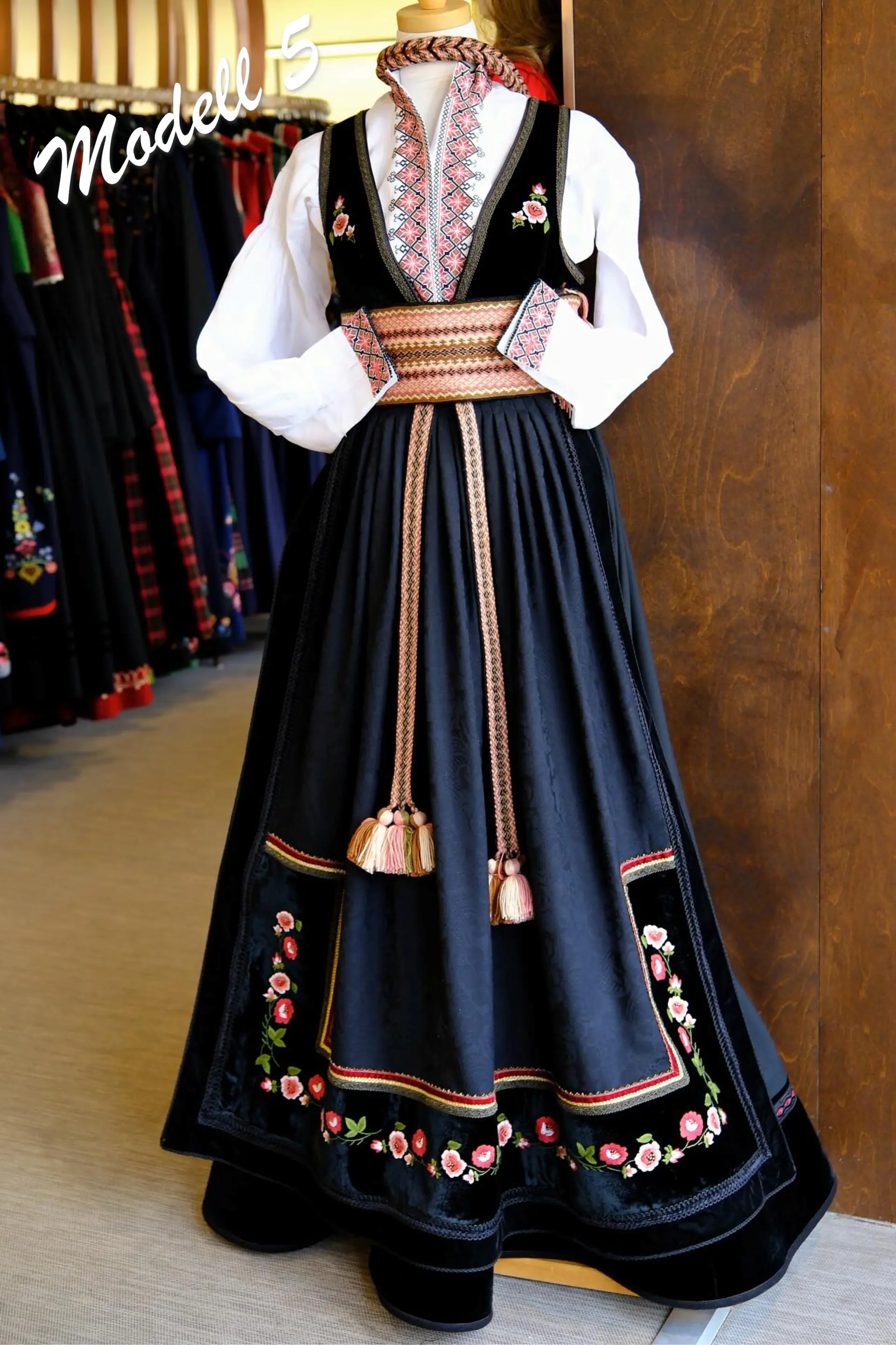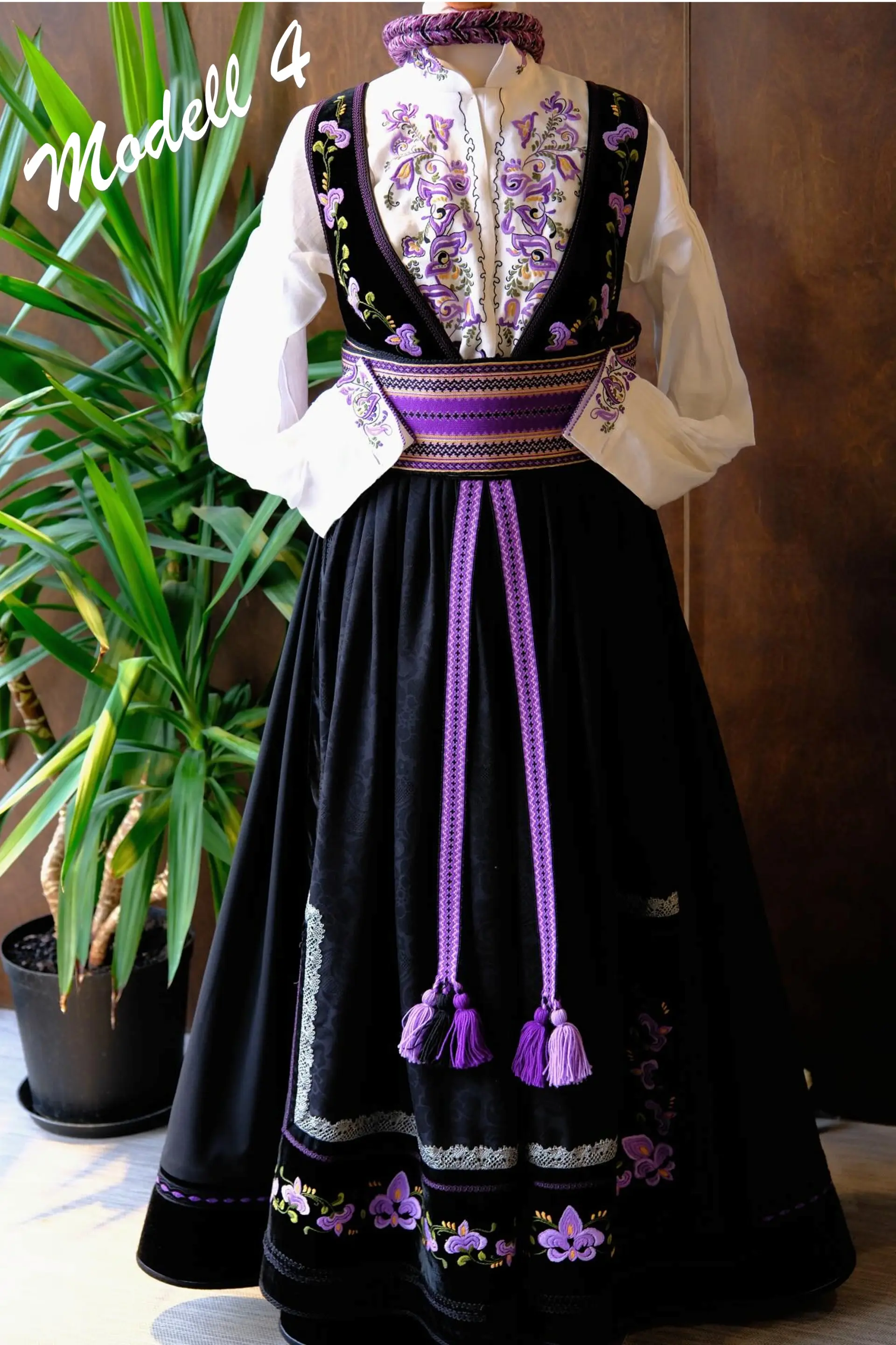 Inkludert i prisen er liv, forkle, stakk, belte, forklebånd, hårvippe, skjorte