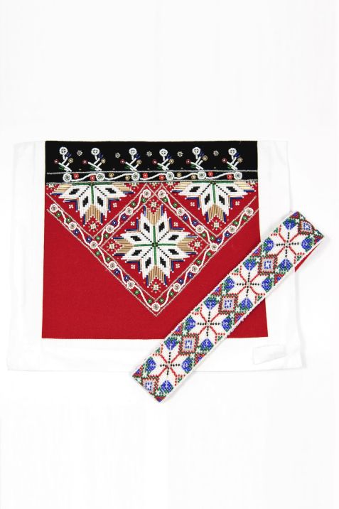 Bringeduk og belte Perlebrodert til Hardanger-, Fana- og NordhordlandsbunadVennligst spesifiser midjemål i notatfeltet. .Prisen inkluderer ikke sølvspenne.Sølv kjøpt hos oss monteres kostnadsfritt.