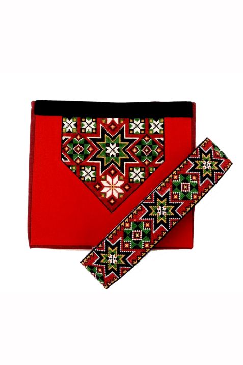 Bringeduk og belte korsstingbrodert til NordhordlandsbunadVennligst spesifiser midjemål i notatfeltet. .Prisen inkluderer ikke sølvspenne.Sølv kjøpt hos oss monteres kostnadsfritt.
