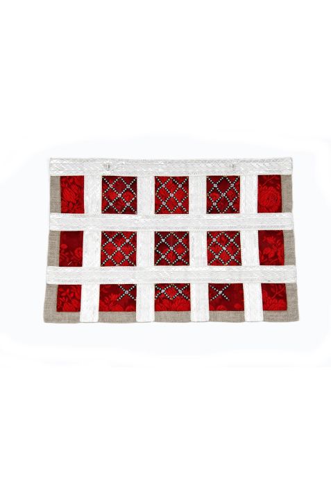 Bringeduk med sølvbånd og perlebroderi til ValdresbringedukstakkVennligst spesifiser midjemål i notatfeltet. .Prisen inkluderer ikke sølvspenne.Sølv kjøpt hos oss monteres kostnadsfritt.