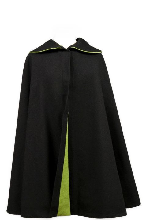 Cape til Østfoldbunad (sort - to-skaft) .Vennligst spesifiser ønsket lengde (FL) og din totale høyde (TH) i notatfeltet.Lengden måler du i åpningen(uten krage), fra halsgrop og loddrett ned til ønsket lengde.NB. Husk å skrive ønsket farge på fôret i kommentarfeltet. .Prisen inkluderer ikke sølvspenne.Sølv kjøpt hos oss monteres kostnadsfritt.