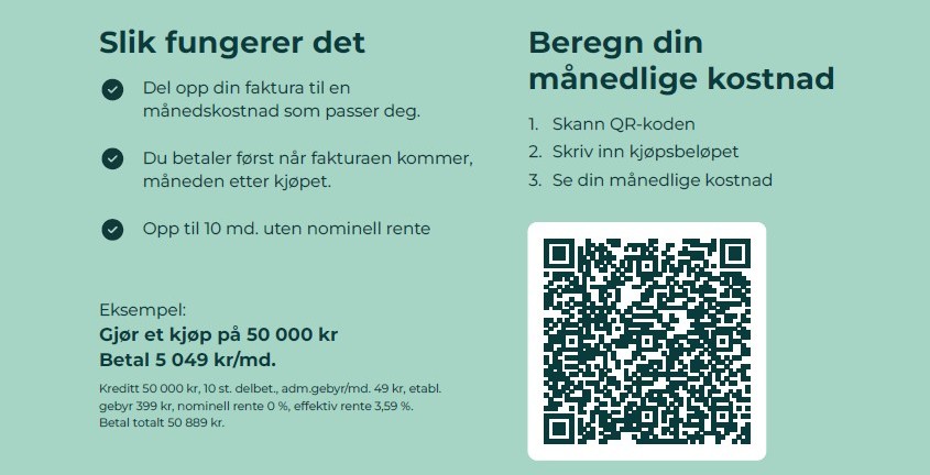 NB! Denne delbetaling gjelder kun ved kjøp i fysisk butikk.