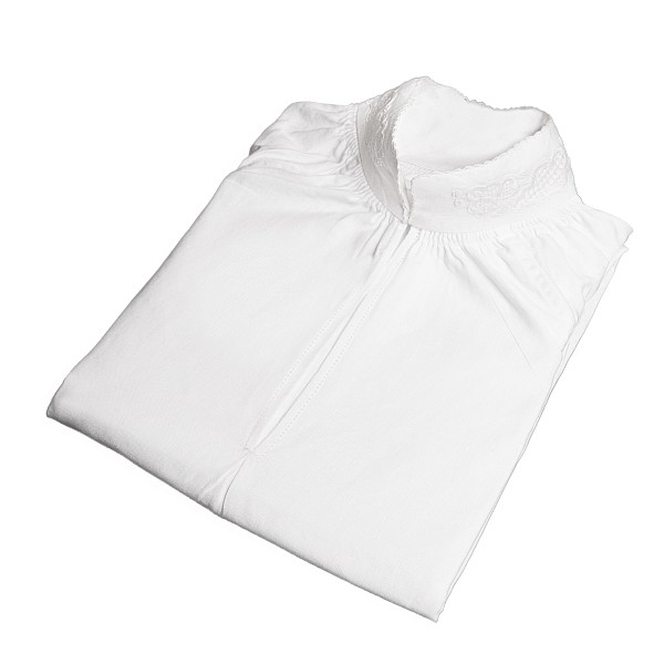 Bunadskjorten er i lin med hvitsømsbroderier på den oppstående krage og mansjetter. Eventuelt kan bomullsskjorte med nupereller også brukes.
