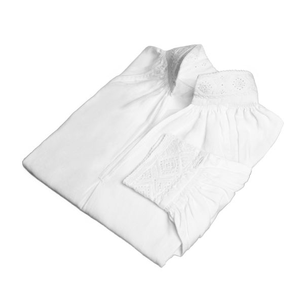 Vi lager to typer broderier til denne bunaden, Flåkrage plattsøm og Halling i hvitsøm. Flåkragen kan bestilles i hvitsøm eller med farget broderi.