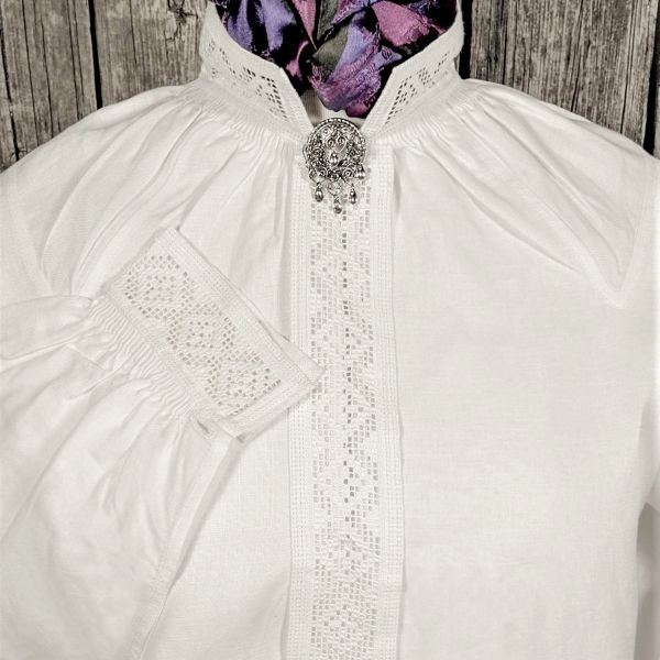 Bunadskjorten er i lin med enten hvit eller svartsøm.