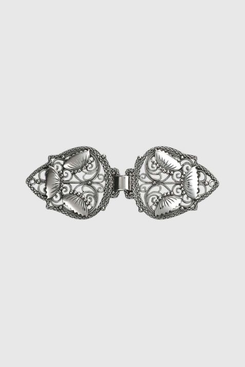 NB! Ikke lager vare.Dette er bestilling produkt, og kan ha en leveringstid på 30 dagerVestspenne i filigran, gammel modell til Nordlandsbunad.69x26 mmNormalt brukes to eller tre par i bunaden