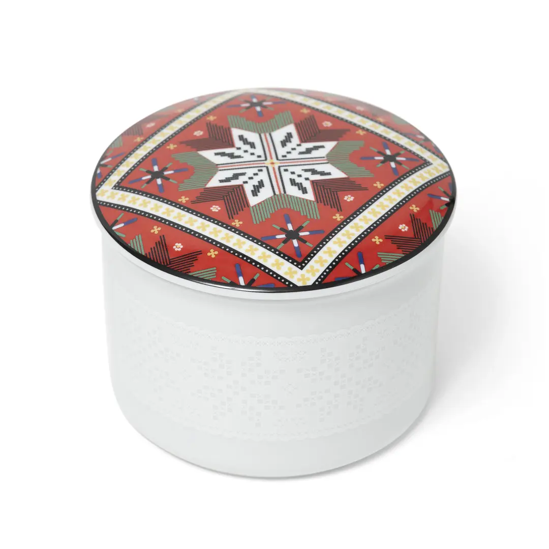 Livet lages i rød klede med en grønn kant, kanten er prydet med perlebord.